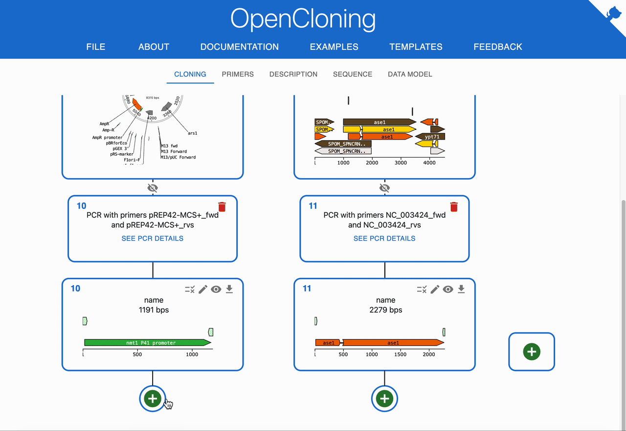 Like any other cloning method, click on the plus icon below a sequence in the Cloning